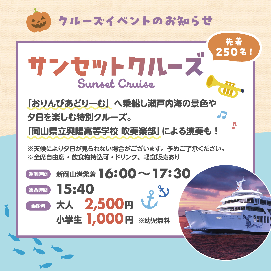 ◆『サンセットクルーズ』先着250名様限定! 16:00~17:30
