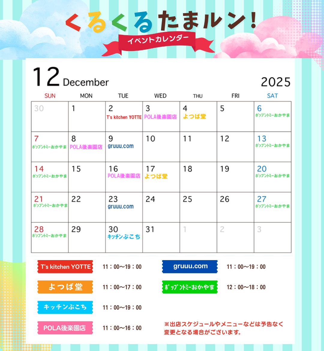 2025年11月の出店スケジュール