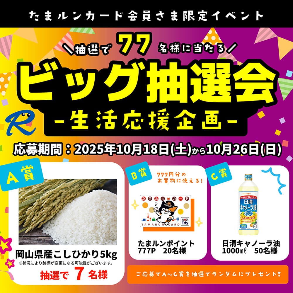 抽選で77名様に当たるビッグ抽選会! 10/18から10/26にご応募ください