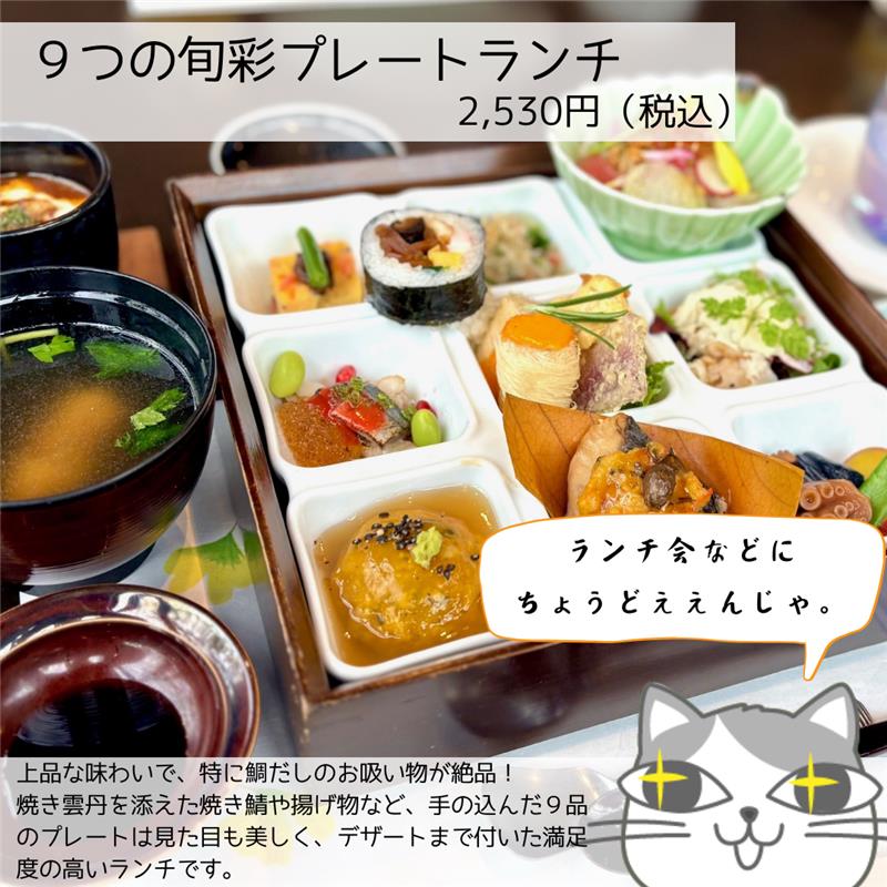 上品さと満足感がそろったご褒美ランチ! 9つの旬彩プレートランチ